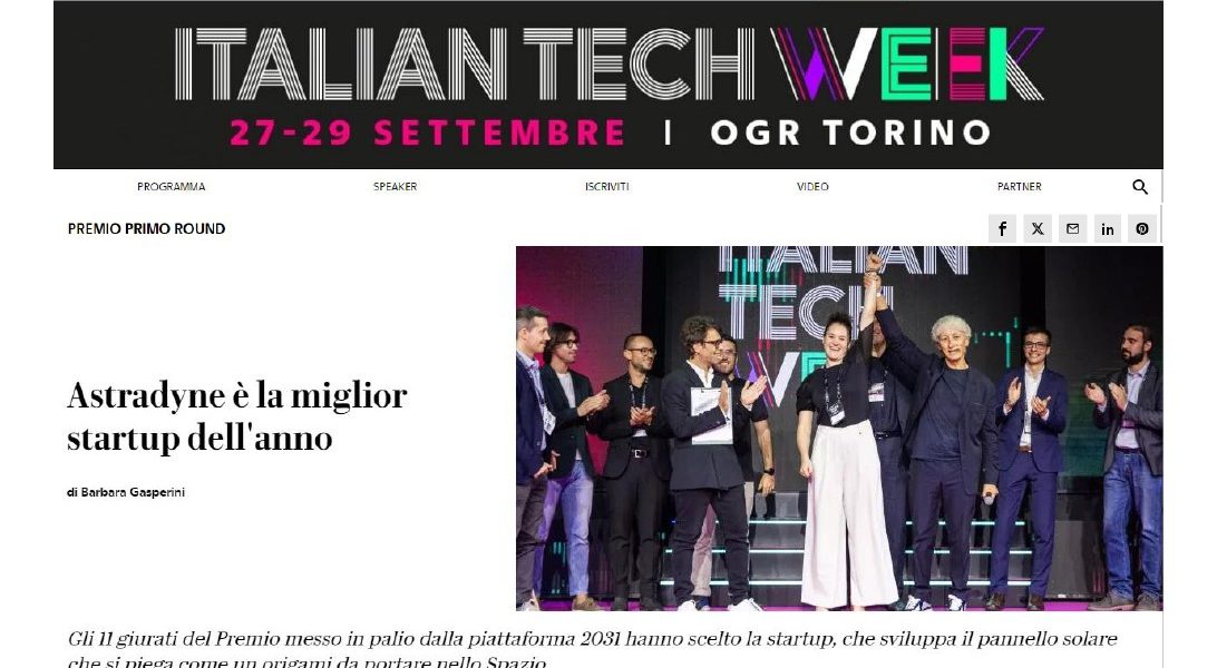Astradyne è una startup del settore aerospaziale che ha ideato SolarCube, un pannello solare che si apre come un origami. Più leggero, più compatto e più potente di tutte le altre soluzioni attualmente sul mercato, SolarCube è l’idea innovativa con la quale Astradyne ha vinto il premio Primo Round della piattaforma 2031, durante l’Italian Tech Week a Torino.