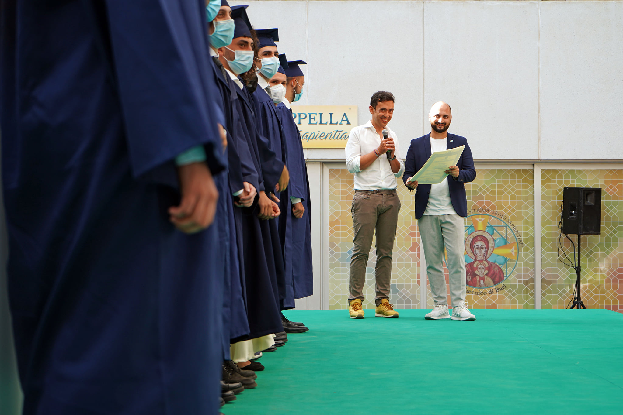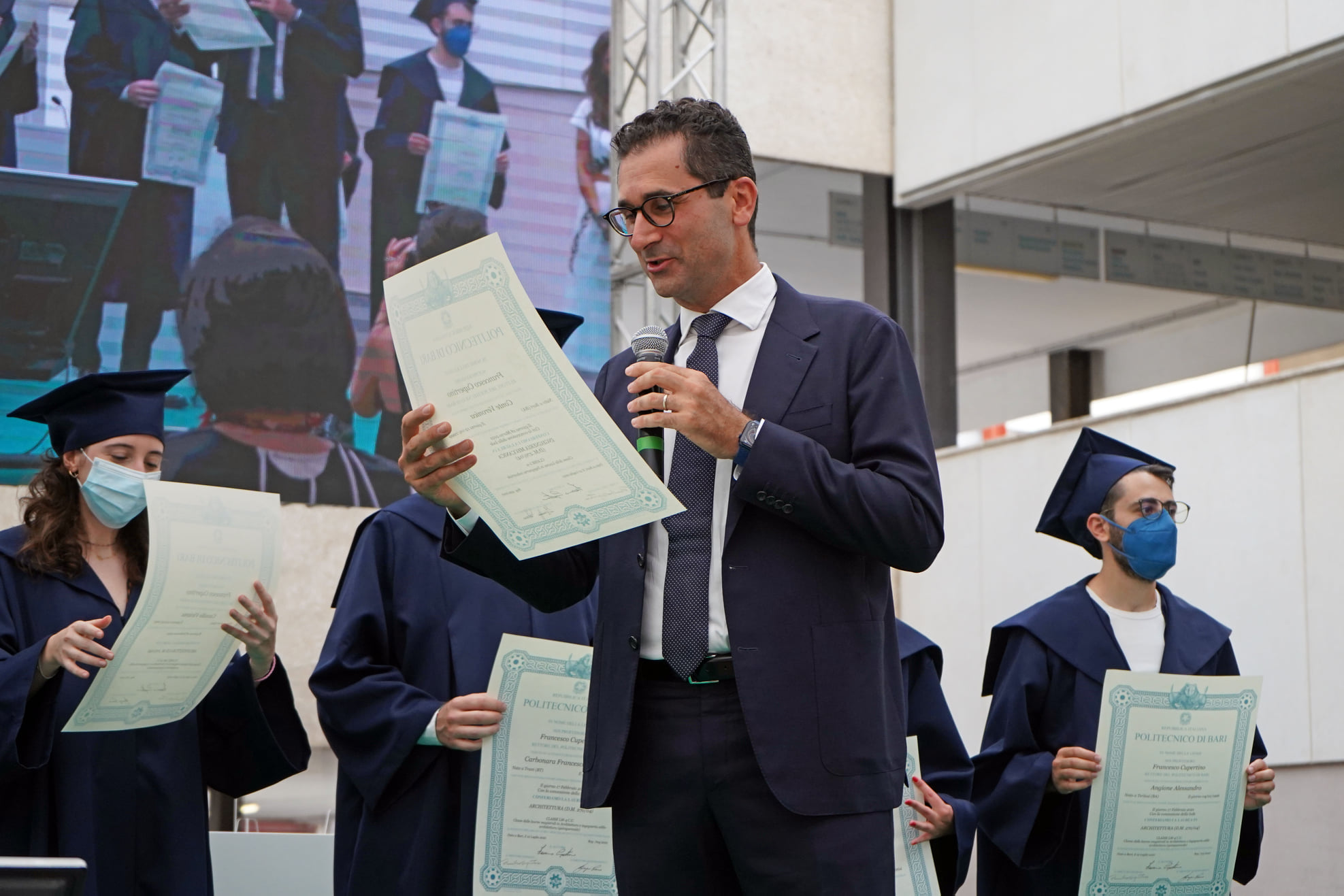 Esempio di tradizione anglosassone molto gradita anche a queste latitudini, i Graduation Days Poliba si sono svolti in un clima di autentica festa. Ha condotto la manifestazione, con il solito brio, l’attore Antonio Stornaiolo, affiancato dalla giornalista e conduttrice Annamaria Ferretti mentre il rettore, Francesco Cupertino e i suoi delegati hanno consegnato, complessivamente, circa 1.000 pergamene ad altrettanti neolaureati a distanza. Per l’ateneo si è trattata della seconda edizione di una manifestazione realizzata per la prima volta l’anno scorso, in piazza Ferrarese a Bari e che ha centrato, anche in questo caso, l’obiettivo di ricompattare la comunità in un momento storico così particolare.